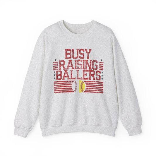 Busy Raising Ballers Baseball and Softball - Unisex Heavy Blend™ Crewneck Sweatshirt